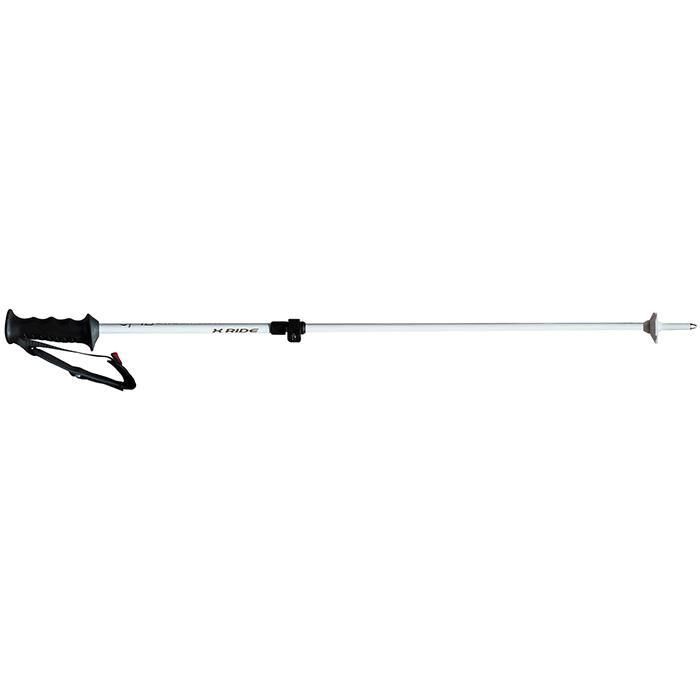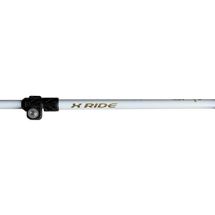 95cmから120cmまで調整可能な伸縮式ポールです。グリップは二重成形ノーマルグリップ、ストラップはベルクロタイプを採用し、ポールとの一体感がアップしました。シャフト、リング、ダブルストッパーはホワイト、ロゴカラーはゴールドでシンプルに仕上げました。調整部はレバーの上げ下げで最適なサイズに簡単にセット可能な、新しいロックプロテクターシステムを採用致しま した。 重量:218g(1/2ペア) 素材:上段 アルミ15mm 下段 カーボン12mm グリップ:WG2(二重成形)ノーマルグリップ ポールのシャフト側面には、「X RIDE」 正面にはidロゴと「IDoneski.com」 の文字が入っています。